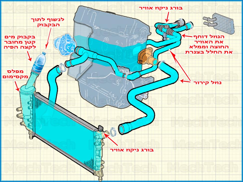 מדריך ניקוי מערכת הקירור ברכב, החלפת נוזל קירור וניקוז אוויר עשה זאת בעצמך (מצולם)