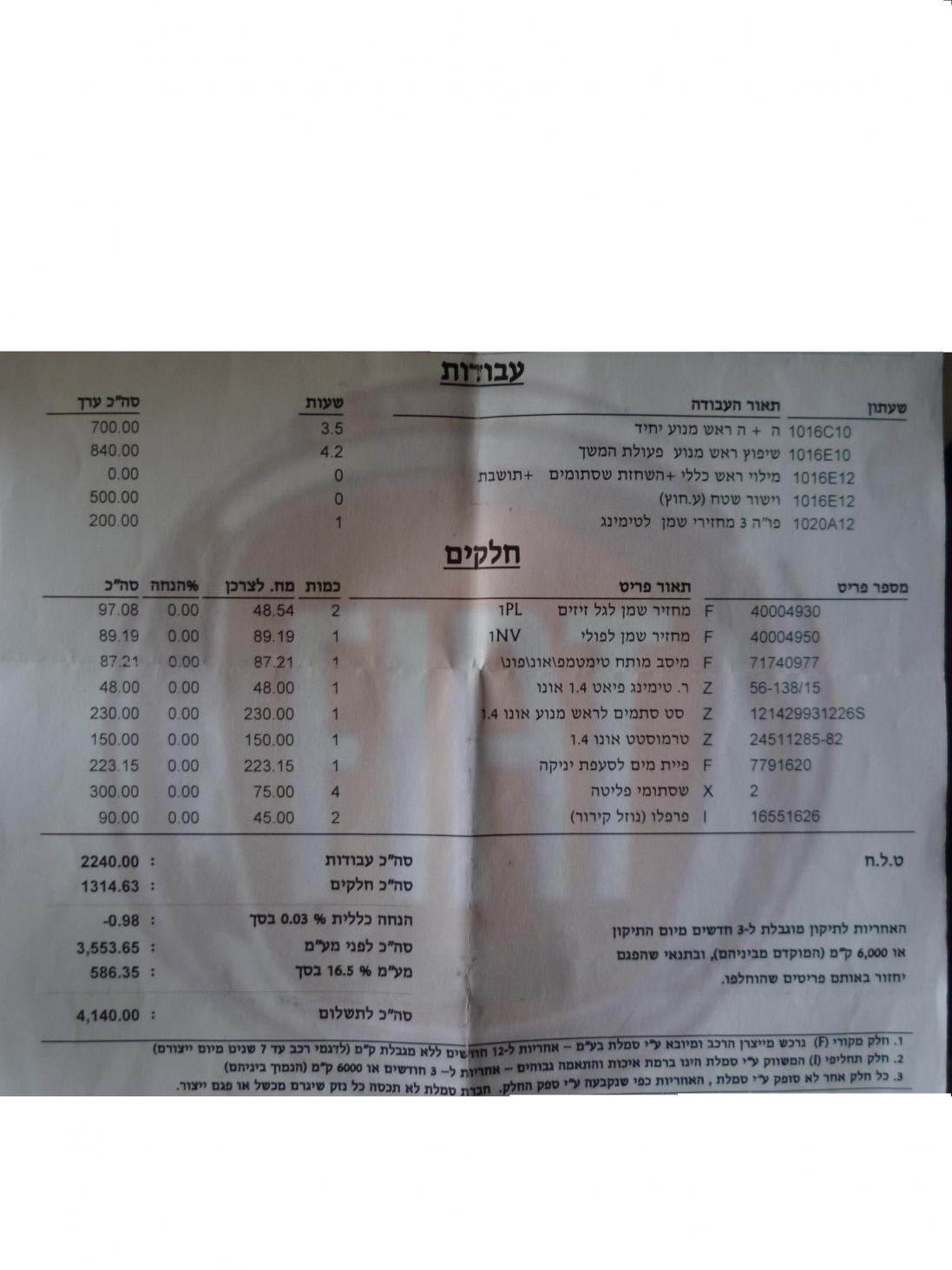 להלן צירפתי את פירוט העבודה והמחיר..(כמובן דאגתי למחוק נתונים מזהים על המוסך)