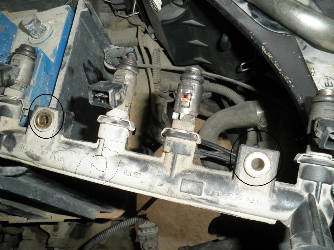 "ב" היינו צינור דלק שמתחבר למזרקים בעיגול אפשר לראות חורים לברגים עליהם דיברתי מקודם.