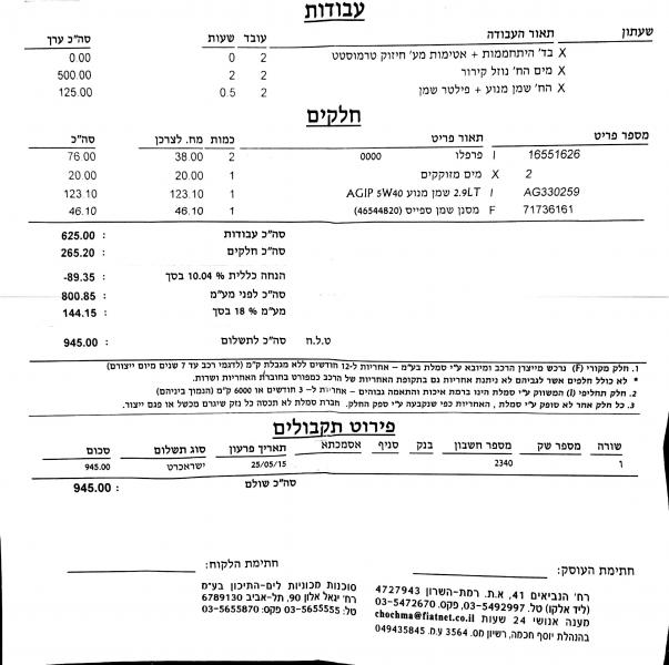 אז החלטתי לקחת למוסך מורשה ואז אני חטפתי חום!