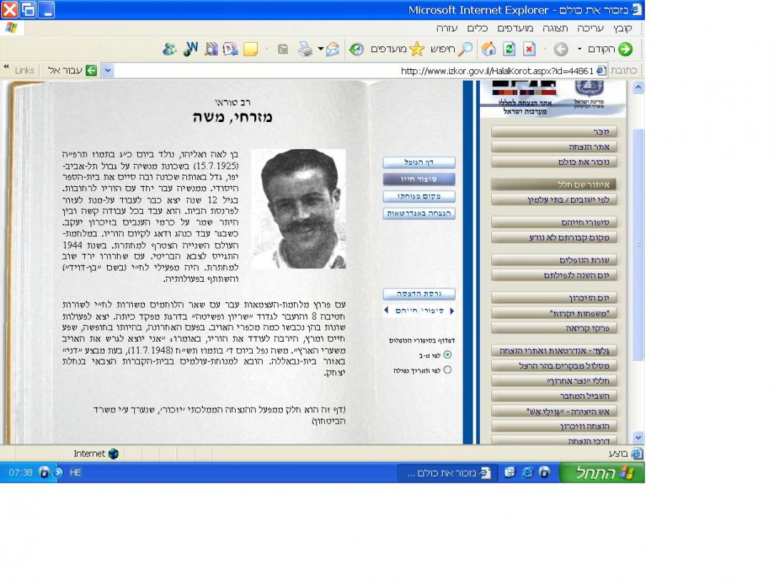 אני אח שכול ממלחמת העצמאות. *** נפל בקרבות בבית נבלה. סגן משה מזר ז"ל.