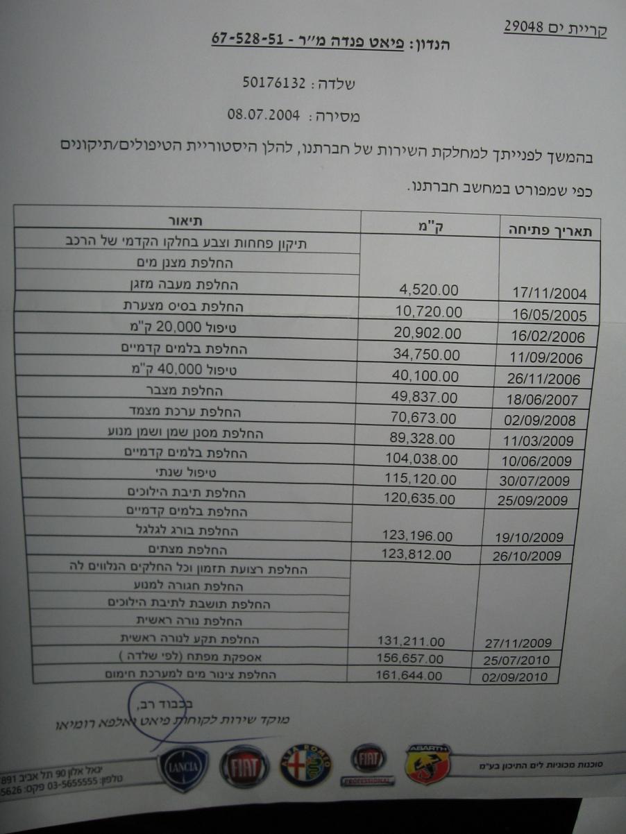הפנדה שלי יוצאת למכירה עקב שדרוג: שנת 2005, ידנית, יד 3, 172K ק"מ. ידיים פרטיות (כולל ראשונה). שאסי נקי, לא החליפו שום חלק פח. הפגושים נצבעו מתישהו בעבר. עד 165K מטופלת במורשה כולל תיעוד (ראה תמונה מצורפת). טיפול 165K במוסך GTA אצל מיכאל (נא לערוך חיפוש כדי להבין):
