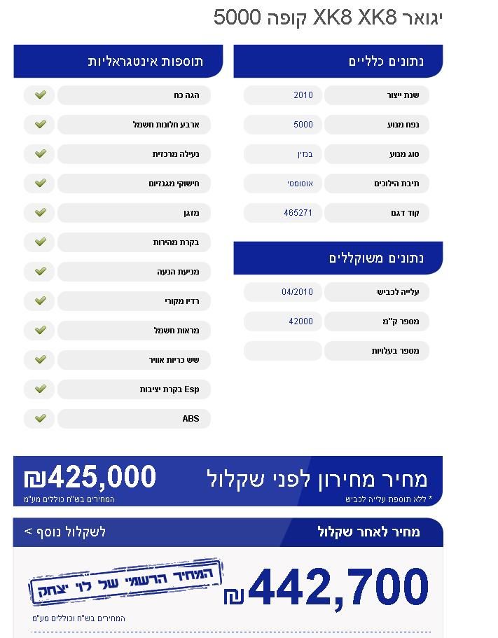 מחירון לוי יצחק משוכלל - 442,700 ש"ח