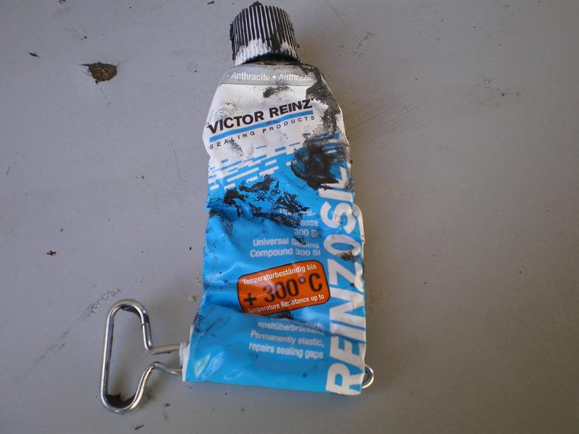 מרחנו על הרדיאטור את החומר שבתמונה, עליו הנחנו את הגומייה וסגרנו את הקליפסים עם פלייר פטנט. הסיליקון הזה עומד בטמפרטורה של 300 מעלות. דוד.