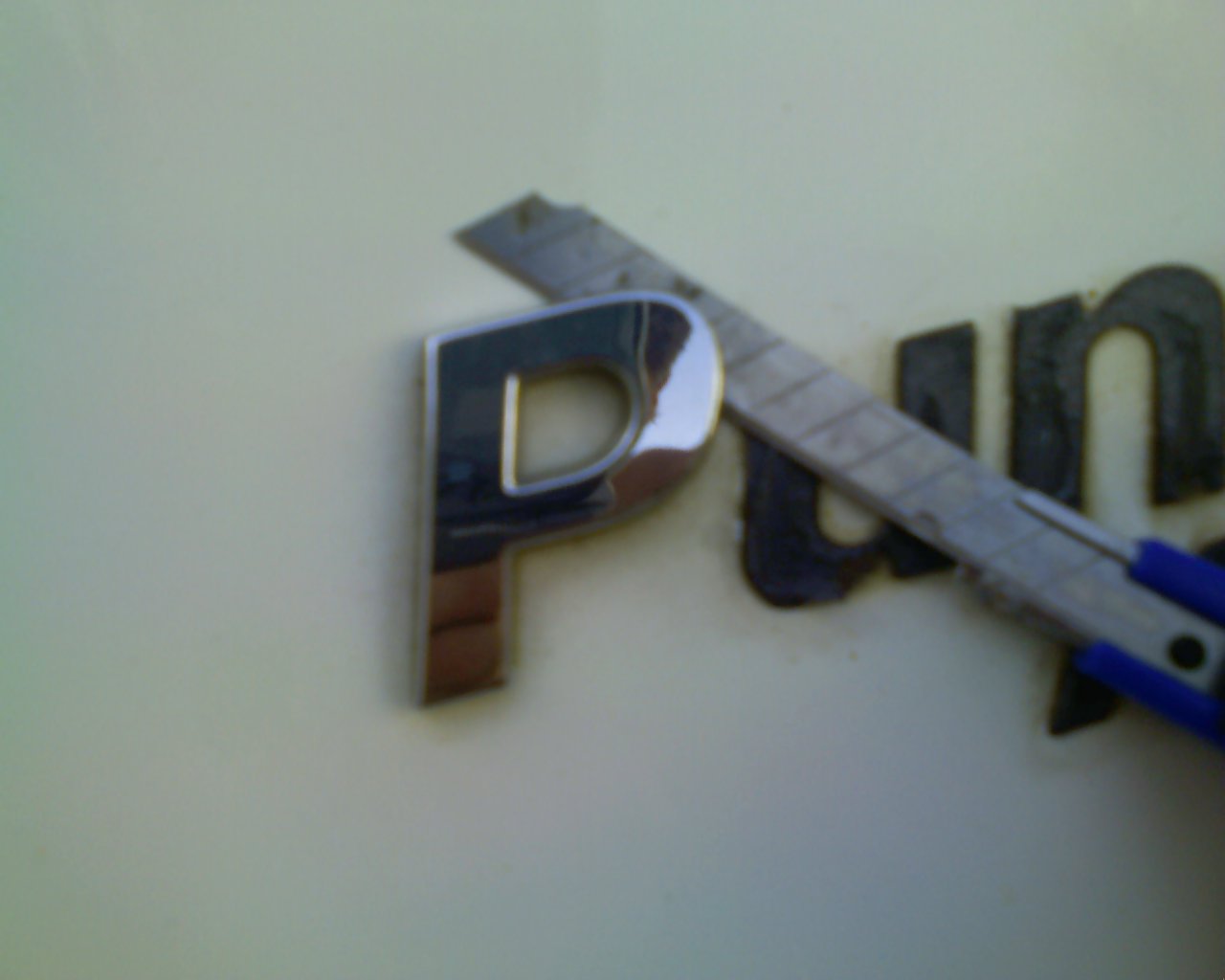 שלב 3 - בזהירות ולאט לאט חותכים את הדבק שמחזיק את הסימלון עד שיהיה ניתן לשליפה.