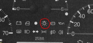 כשנורת בקרת האורות הזאת דולקת, הדלק רק את אורות החנייה (הפעלה אחת בידית האורות)