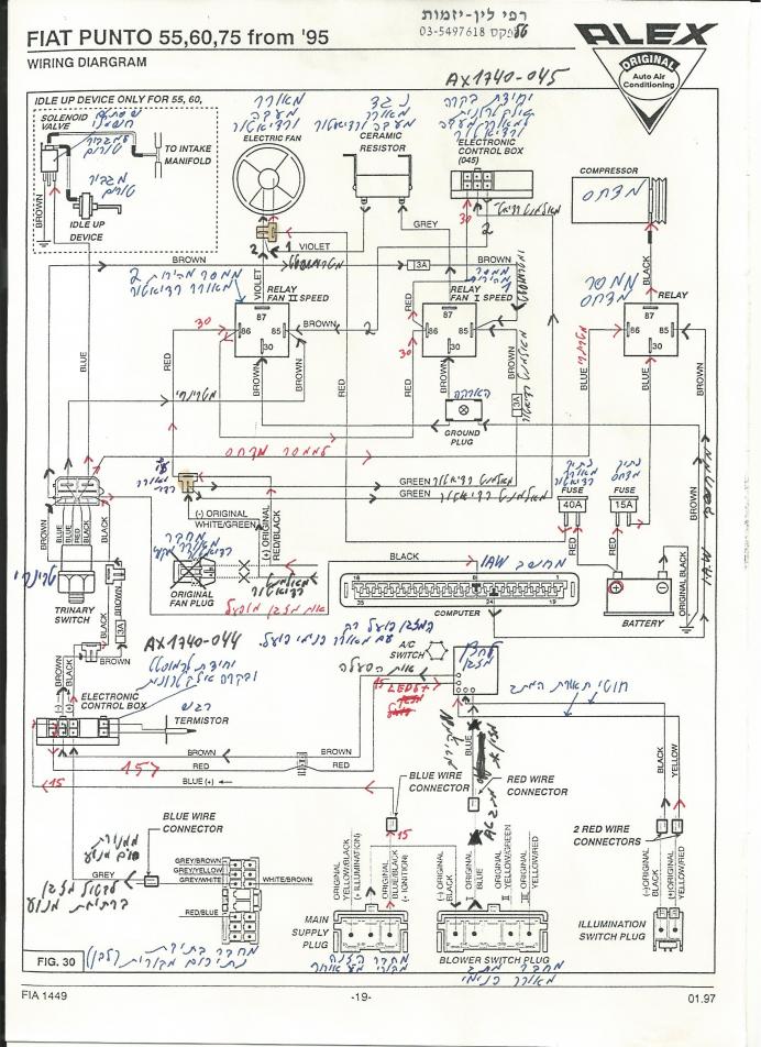 יש לי את שרטוטי החשמל לפיאט פונטו 1995, שתרגמתי ופענחתי כפי שראית.