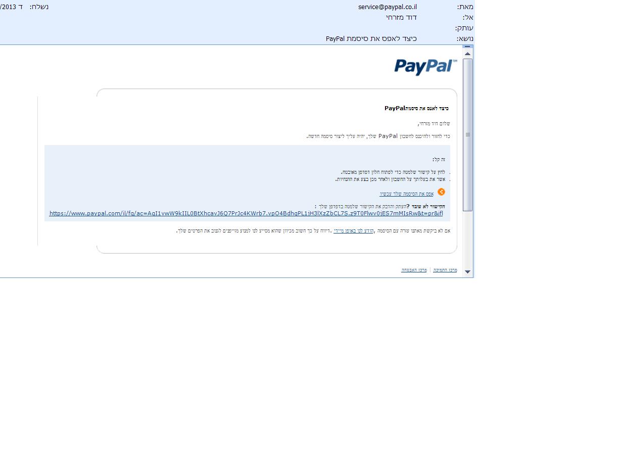 צילצלתי למס' של פייפאל, אמרה לי שאינה יכולה לעזור לי, משום שהבעיה לא באתר.