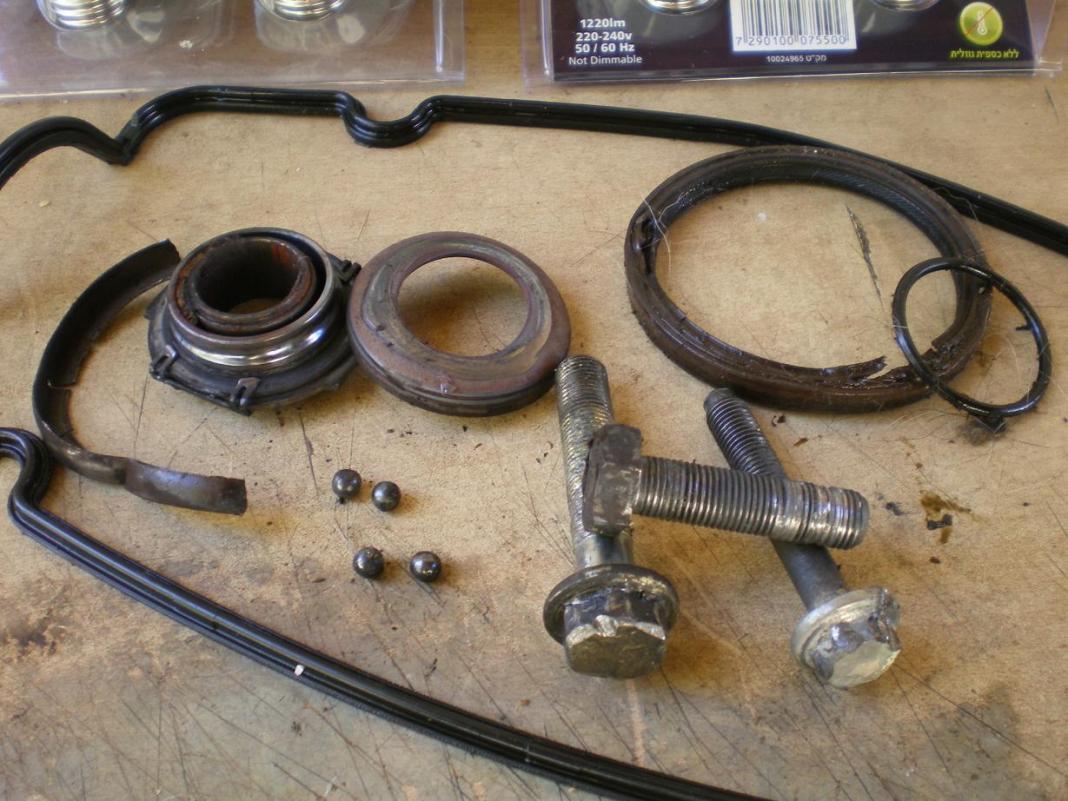 הייתה לו שריקה מחרישת אוזניים מכיוון הגיר. ונזילת שמן חזקה מעל הגיר.אמר שצריך להחליף גיר. לא הסכמתי איתו, אמרתי שנדע רק לאחר הורדת הגיר. ארז התחיל להוריד את הגיר, ואני ישבתי וצפיתי בטלוויזיה. לשמע הקללות שקילל , יצאתי החוצה, אמר שהברגים הרוסים ולא נפתחים, הבוקסה מסתובבת חופשי עליהם. (כמו אצלך עמוס/יאיר, זוכרים ?.) כאן למעשה הייתה עיקר העבודה. חיממנו ודפקנו, ואפילו פירקנו סעפת פליטה. עד שהצלחנו לשחרר. הורדנו את הגיר, ג'ולות וחלקי פח עפו החוצה.התברר שהמסב התפרק לחתיכות ופגע בשרוול עליו הוא נע. היה צורך ללטש אותו כדי שהמסב החדש ינוע חופשי. תוקנו הברגות על הבלוק, והוחלפו ברגים חדשים. הקלאץ הוחלף למקורי, ליתר בטחון הוחלפו גם מחזיר השמן ופקק נס קפה. עידן לא בכדי צלצלתי אלך אתמול בערב, כדי שתבוא לראות את הבעיות. טוב נגמר. שותים כוס קפה ועושים נסיעת מבחן. יאיר תחזיק לי אצבעות .ולדימיר הגיע הזמן שתרשם לפורום, ותעדכן. דוד.