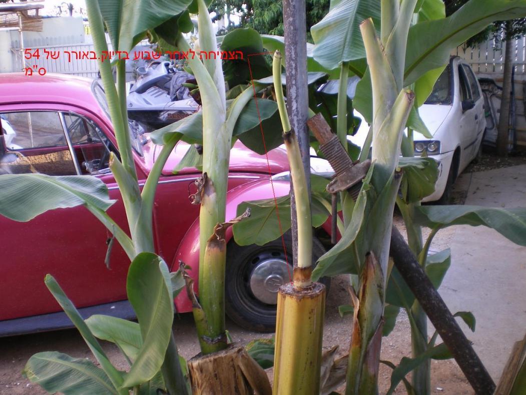 ![]() נמאס ומפחיד לי כל פעם לתפס לגובה 5 מ' לקטוף בננות. במקרה חתכתי עץ אחד בגובה מטר מהאדמה, אחרי שבועיים הוציא אשכול בגובה של 120 ס"מ מהאדמה. העץ השני שחתכתי גדל לגובה 53 ס"מ תוך שבוע. דוד.