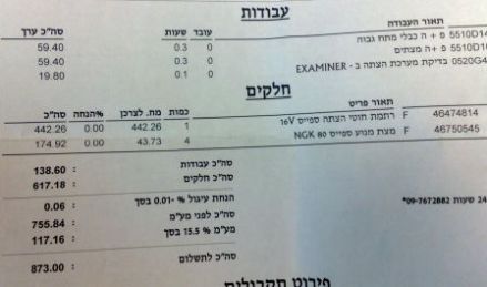 800 שקל בשביל להחליף פלגים וחוטי הצתה, למה, הגעת אליו עם מעבורת חלל אפולו 31?