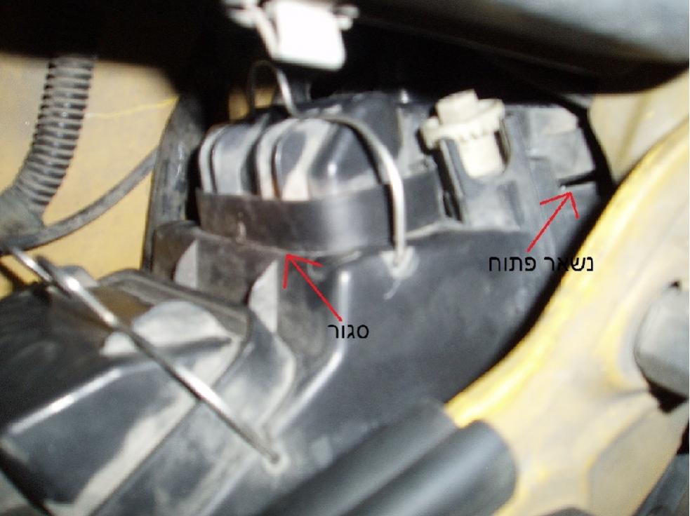 ועכשיו לבעיה - הנורה בצד של הנהג הפסיקה לעבוד לפני מספר ימים, אז נסעתי בינתיים עם אורות ערפל בלבד במקום אורות מעבר. ( תכננתי לקנות נורה חדשה - H7, ולהחליף בהזדמנות הראשונה ). היום באתי להוציא את הנורה השרופה כביכול ומסתבר שאלו היו רק המגעים וברגע שנגעתי בה היא נדלקה, ובנוסף גיליתי שיש ברכבי נורה מסוג H1 ולא H7. עד כאן הכל טוב ויפה . אבל - שניסיתי להחזיר את המכסה של הנורות, הצד החיצוני שלו שאמור להיתפס בקליפס ( בחלק הצמוד לכנף ) ולהצמיד אותו לאטימת הגומי- לא "נכנס" טוב, והמכסה נשאר סגור אך לא אטום בצידו החיצוני. מכיוון שאין לי גישה לשם - יש למישהו רעיון כיצד לסגור אותו כמו שצריך? התעסקתי עם זה במשך שעה ולא הצלחתי. תודה נערך לאחרונה על ידי גיא .ב : 21-11-09 ב 21:56. |