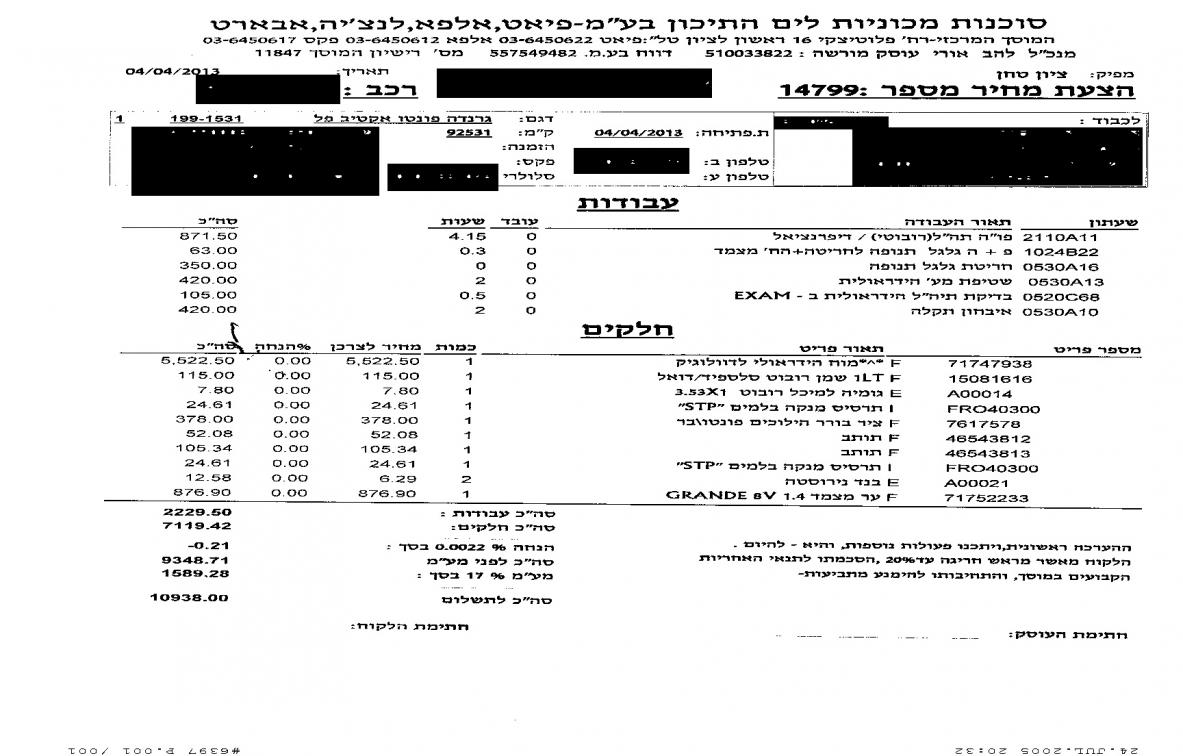 שאלה למביני עניין : תראו את הצעת המחיר המצופרת למעלה , למה דחפו תרסיס STP לניקוי בלמים פעמיים מי צריך את זה ?? ומה זה החוצפה הזו לחייב עבור 2 בנדים נירוסטה 6.26 שח כל אחד ? מה יש המוסך לא יכול לספוג עלות של 12 שח כאשר אתה כבר דוחף ללקוח הצעה של מעל 10 אלף ?