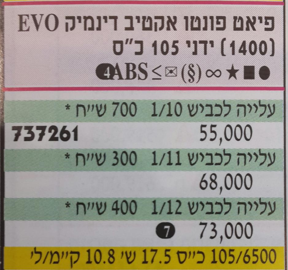 | צניחת ערך של פיאט במחירון או טעות של לוי יצחק? | אבימ | פיאט כללי | 8 | 19-01-11 09:33 |