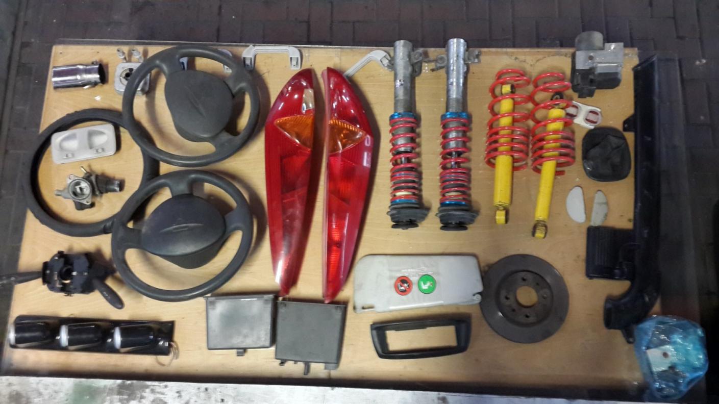 סט צלחות בלימה קדימה משומשות מעט וסט רפידות חדשות HGT סוכך שמש נוסע. חלקי קונסולה תיראו בתמונה ידיות איתות ווישרים מאורחי ההגה מנורה ראשית בתוך הרכב. הגה פונטו ספייס עם כרית אויר קולר שמן HGT מחשב הגה HGT חלקי פלסטיקה פנימית HGT פנסים אחורים HGT סופית אגזוז לכל רכב עור ידית הילוכים + ידית HGT גנט 1 אבארט HGT. עקום קצת אבל שמיש אפשר ליישר. פנס במצב לא הכי טוב. פונטו ספייס וHGT. חלק עליון קונסולה + מסך מגע לשליטה על מחשב. ללא מחשב חנוכית דלק עם מזרקים HGT/ משולשים HGT/ מחבר חשמלי מאחורי ההגה של HGT/ פס קישוט ימין HGT מגן דוד אחורי HGT מגברי קסנון כללי מחשב רכב HGT/ מזרקים פיאט דובלו. כיסוי חגורות כללי של אבארט. הגה פיאט דובלו עם כרית. בולם קדמי עם קפיץ דובלו. וריאטור HGT. משופץ. משענת יד מקרר כללי. מגבר לא ידוע כללי אקולאיזר חיצוני שליטה על הסאב. סט עיגולים לעשות אנגל אייז לבד ממש איכותיית. פונטו ספייס ו HGT. רמקולים מורל 6.5 טמפו. סט שלם רמקולים מורל הייבריד. 5.25 סט מלא. רמקולים JBL 10 אינץ. כן כן 10 אינץ. מחליף סאב וופר. מכשיר לווקס חשמלי. משענת יד של גוליטה. משענת יד דובלו. אזעקת ביפר רב בריח. זוג רמקולים קטנים 4 אינץ של סוני. סאב קטן מיוחד עם מגבר קטן. מקורי של HGT. סט ברגי נעילה חדש. מקצועי. ועוד כל השטויות שאתם רואים בתמונות. תציעו מחירים. פתוח להצעות. שחר 0508810671