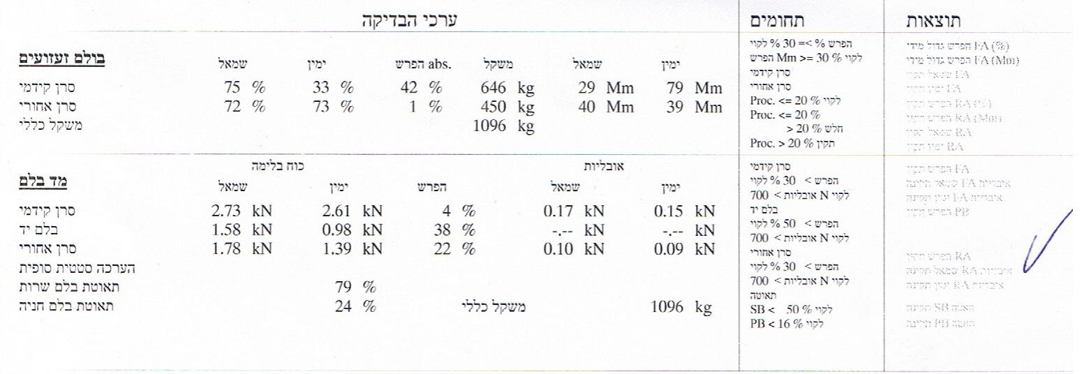 סה"כ זה לא קריטי. הבדיקה של הבולמים הקדמיים נראית לי תמוהה. הפרש של 40% בין בולם לבולם צריך להיות מורגש גם בנהיגה.