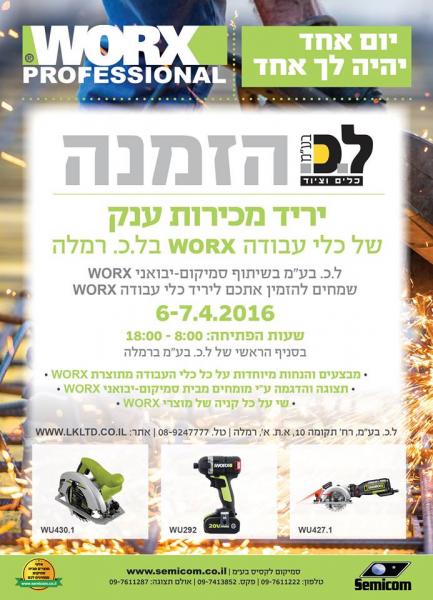 ל.כ. בע"מ בשיתוף סמיקום - יבואני WORX שמחים להזמין אתכם ליריד מכירת כלי עבודה WORX