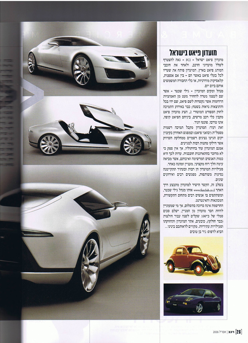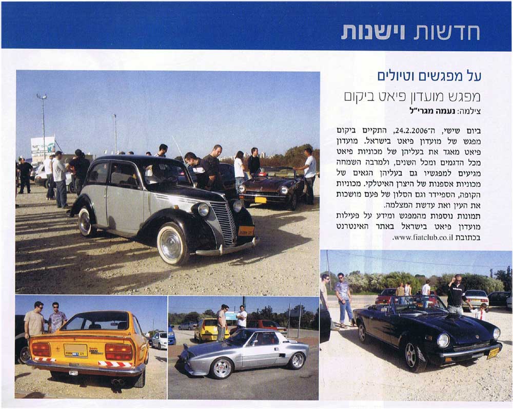 מפגש מוצלח של מועדון פיאט, והשקת פיאט 124 ספיידר. | מועדון פיאט ישראל | 50 | 25-05-07 22:24 | |