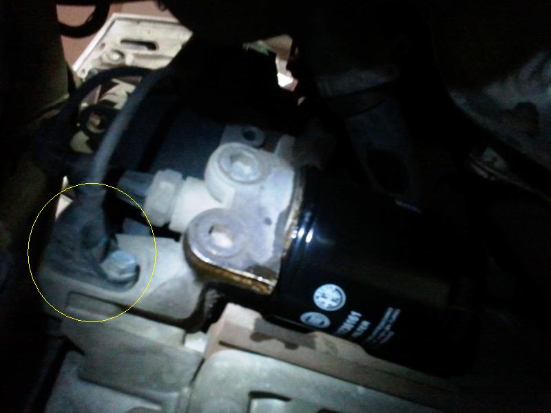 הגישה היא מתחתית הרכב ואין צורך לפרק שום כיסוי פלסטיק. החיישן מוקף בעיגול צהוב.