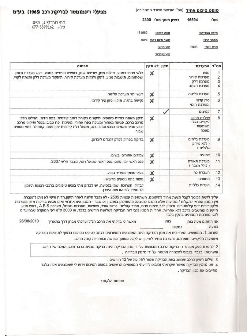 פענוח דו"ח בדיקה - פונטו YOUNG 2003
