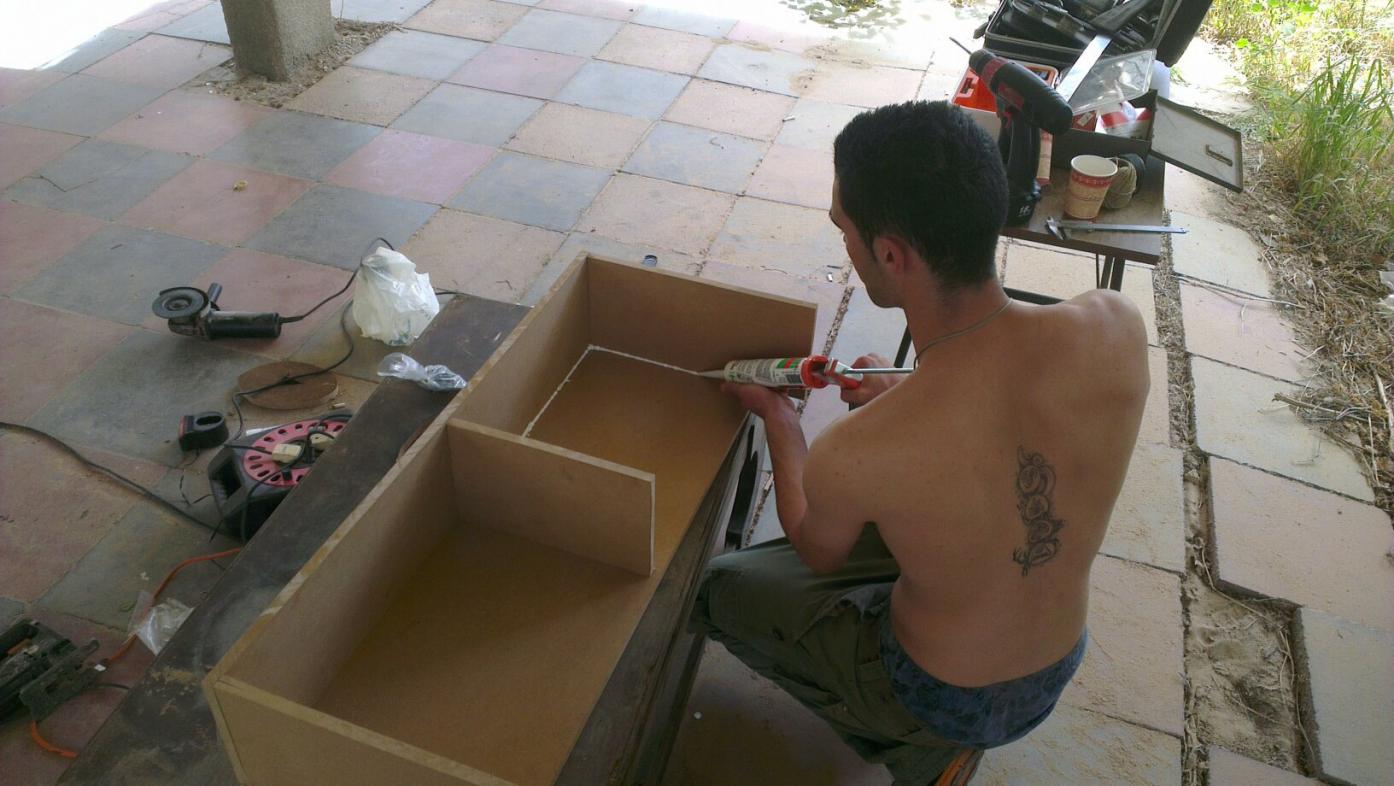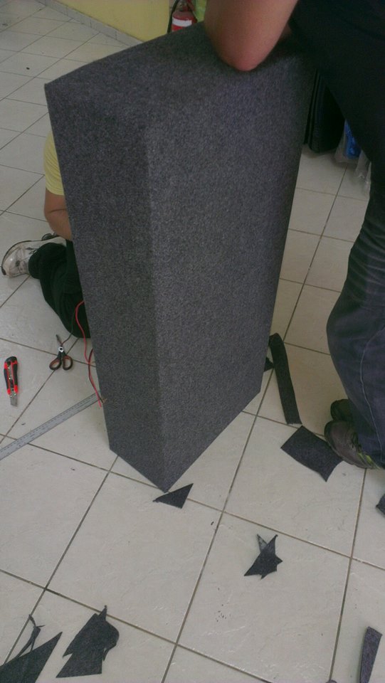 התיבה בנויה בדיוק לפי המידות של הסאב. יש לי בערך חצי אינצ' בין הרמקול עצמו לעץ.. ולהפתעתי המוחלטת לפיאט פונטו יש אקוסטיקה מאוד טובה... לא הייתי צריך לשים כלום וזה נשמע מצוין. צריך לוודא שאחרי שמפרקים את הפלסטיקה ברכב סוגרים הכל כמו שצריך והדוק, אחרת הפלסטיקה רועדות וזה נשמע חרא...