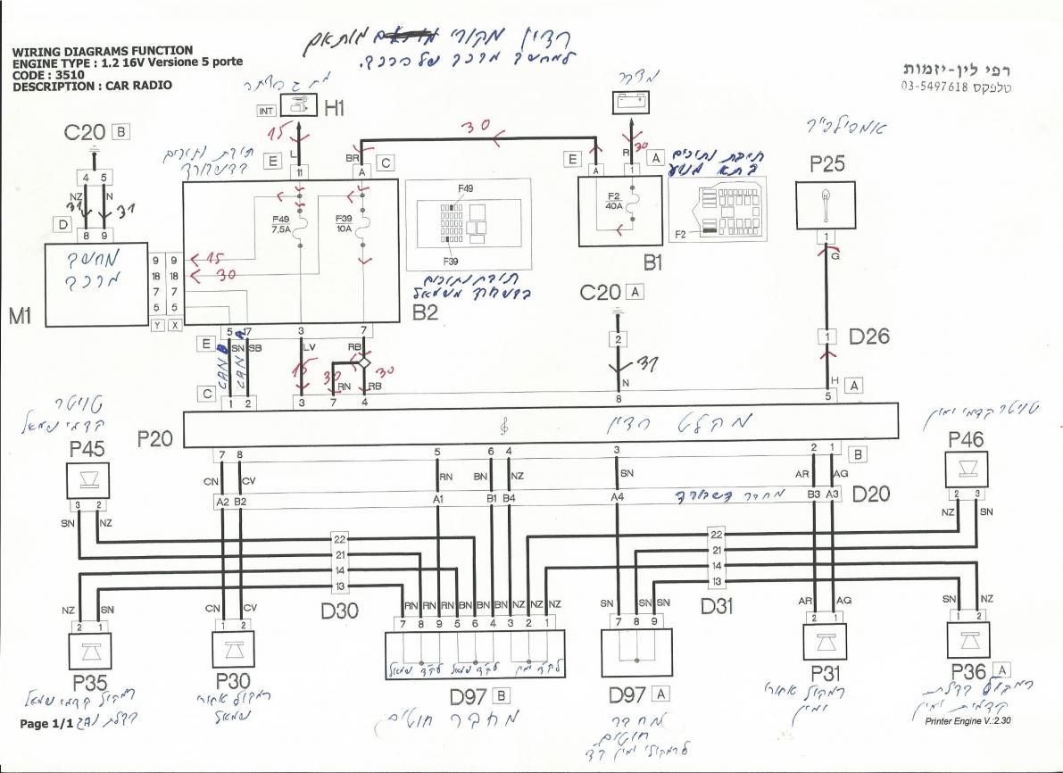 מצ"ב השרטוט של חיבורי הרדיו המקורי של פיאט משנת 2001 ואני מקווה שזה ללא שינו גם במכוניתך.