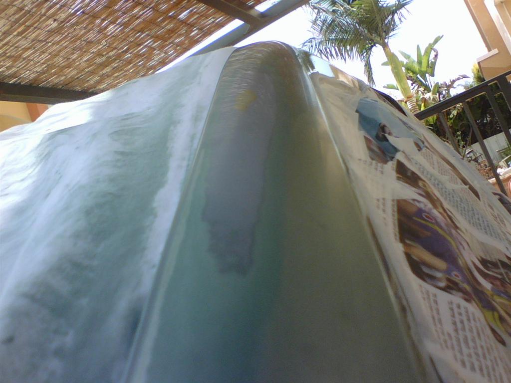 שיוף האיזור הפגוע, בעדינות אך ביסודיות, בעזרת ניירות מים. תחילה עם נייר גס יותר (600) ואח"כ עם נייר עדין יותר (1500).