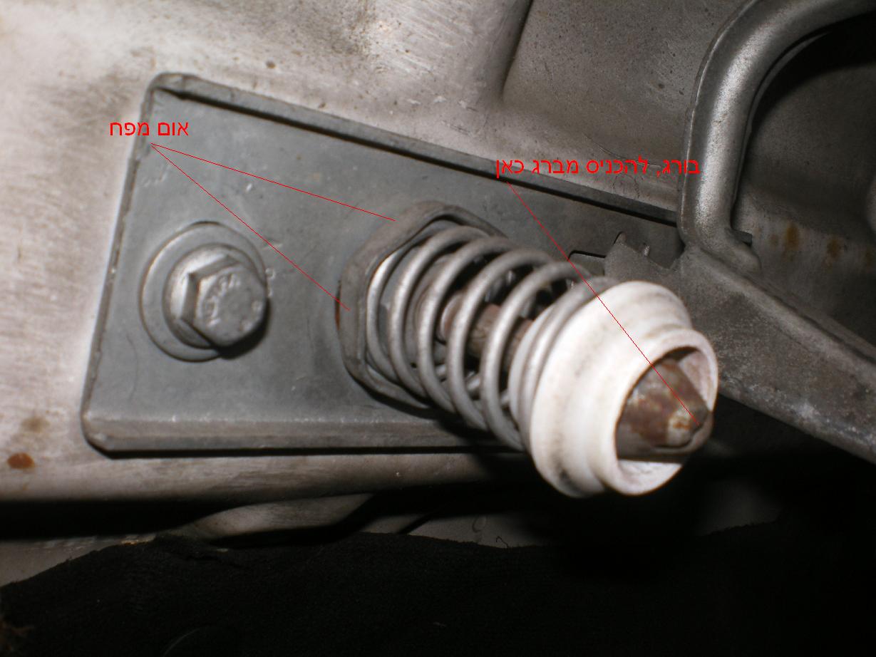 פתח את מכסה המנוע, וכוון לפי התמונה המצורפת. שחרר את האום מפח. כוון עם מברג את הבורג.