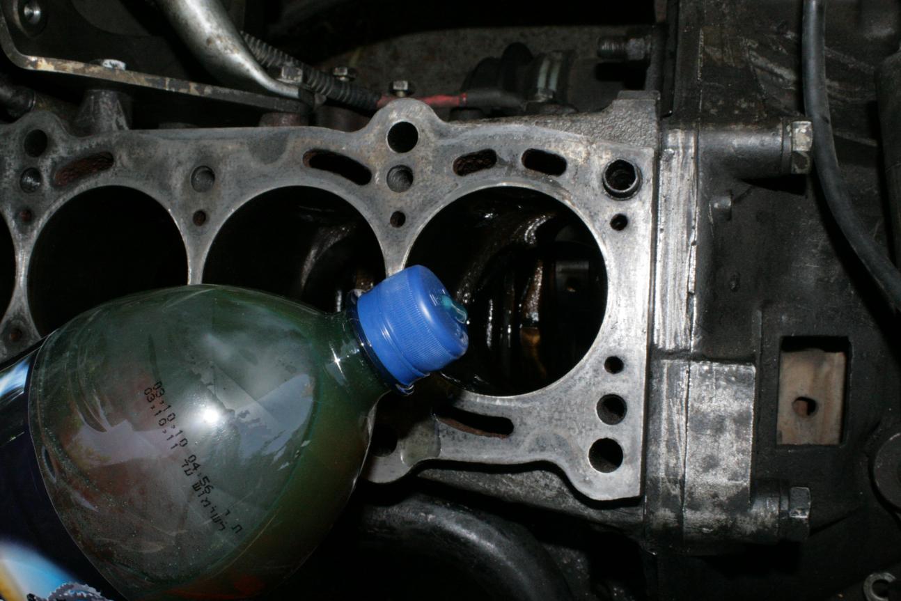 זה לא בקבוק סולר - זה בקבוק שמן - כשעושים הונינג (honeing) לצילינדרים חייב לשפוך שמן תוך כדי - כי רוצים משטח עגול וחלק ככל האפשר. אגב, זה הונינג (השחזה בעברית) ויש מקרים חריגים כשהצילינדר נעשה אובלי מעט ואז צריך לעשות בורינג (Boreing או קדיחה בעברית) מה שנהוג לכנות בשפה פשוטה - חריטה, בכדי ליצור מחדש צורה תקינה לצילינדר.
