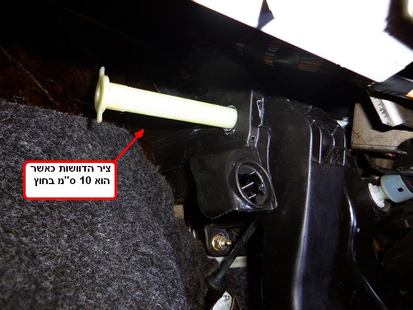 המידע שמובא כאן הוא בערבון מוגבל מאוד ולא נכתב ע"י איש מקצוע לכן כל העושה שימוש במידע זה עושה זאת על אחריותו האישית בלבד . בעיית הרעשים / חריקות מדוושת המצמד היא בעייה מוכרת בפיאט פונטו ספייס. בדר"כ שומעים את החריקות בימי הקיץ החמים , ציר דוושת הקלאץ' ( שזה בעצם גם הציר של דוושת הבלם ) עשוי פלסטיק כמו גם הדוושה עצמה . עם הזמן הגריז שעל הציר מתייבש ומתחילים חריקות ורעשים. על מנת להפסיק את החריקות יש לגרז את הציר . לפני שאתם מתחילם בעבודה רצוי שתהיו בטוחים שהחריקות שאתם שומעים אכן מגיעות מהדוושה ! יש רעשים שעלולים להישמע לכם כאילו מגיעים מאיזור הדוושות אבל בעצם הם מגיעים מאחד מחלקי המצמד . כשאתם שומעים את החריקות תעמדו במקום שקט תפתחו את דלת הנהג לחצו על הדוושה ותאזינו אם הרעשים באמת מגיעים מתוך הרכב ולא מבחוץ ! ( למרות שיכול להיות שהרעשים גם מהדוושה וגם מהצמצד )מנסיון שלי, שימוש בספרי סיליקון או גירוז הציר בלי לפרק אותו לא פותר את הבעייה לטווח ארוך . הדרך שאני מביא פה לגירוז הציר היא הדרך היותר פשוטה כך שלא מוציאים לגמרי את הציר . הדברים שעליכם להכין בטרם פירוק ציר הדוושה : 1 . פנס כלשהו שמאיר שטח , אולי פנס פלואורסנט כמו של הפסקות חשמל .( האיזור די חשוך גם באור יום ) . DOW MOLYKOTE EM-30L Synthetic PAO Grease for Plastics תעתיקו ותעשו חיפוש באי ביי.2 . מראה קטנה . 3 . תכינו לעצמכם שעה פנויה לביצוע העבודה . ( אפשר לסיים את זה גם ב- 20 דקות ) 4 . כדאי איזה שטיח לרגליים . 5 . גריז : עדיפות לגריז שמיועד לגירוז חלקי פלסטיק . בגריז רגיל יש תוצרי נפט ולפי מה שידוע לי זה מזיק לפלסטיק למרות שיכול להיות שגם זה יפתור את הבעייה . אני קניתי באי ביי גריז לבן לחלקי פלסטיק : לפי מה שידוע לי גם פיאט משתמשים בגריז לבן כלשהו , אתם תשימו לב לשאריות גריז לבן כשתפרקו את הציר . ( לא כל גריז לבן הוא לחלקי פלסטיק ) איזור הדוושות הוא איזור בעייתי בגישה אליו לכן לא הכי קל לעבוד שם . ראשית יש לשלוף את הקליפס שתופס את ציר הדוושות בצידו הימיני ( מתואר בתמונה אם כי במטושטש , כשתביטו לאיזור תבינו על מה אני מדבר ) הגישה אליו קצת בעייתית כי הוא יושב צמוד לקופלינג (ציר טלסקופי שמעביר תנועה סיבובית מהמוט הגה למסרק ההגה) את הקליפס שולפים כאשר מרימים מעט לשונית אחת של החלק המתפצל שלו ודחיפת הקליפס לצידו הנגדי . לאחר הוצאת הקליפס מישכו את הציר לאט מצידו השמאלי ( אפשר להתחיל עם מברג ), בעדינות זה פלסטיק. תוציאו אותו כך שיבלוט החוצה 10 ס"מ, ולא יותר מזה !!! לא מוציאים לגמרי את הציר !!! לכן יש לעשות את זה לאט ולהפעיל מעט כוח כדי לא לשלוף אותו בטעות לגמרי .( הוצאת הציר לגמרי אפשרית אבל מצריכה שיטה אחרת כי אז קשה מאוד להחזיר אותו !!! וגם יש אפשרות שקפיץ מחזיר דוושה יתנתק ממקומו שגם אותו זה די מטרד להחזיר ) שימו לב שהדוושות פחות או יותר במקומן ולא זזו . עכשיו תגרזו את הציר מסביבו, בחלקו הבולט החוצה , תגרזו גם עם מקל צמר גפן (או משהו יותר ארוך ) מצד ימין של הדוושות בתוך הפיר שהציר יושב, תגרזו בין צידי הדוושה איפה שהציר יושב, יש שם בוקסות פלסטיק כאלו, תדחפו שם גריז עם מברג או משהו ( מנה נדיבה ) ואם תצליחו מכל כיוון זה טוב . תחזירו את הציר באותה הדרך שהוצאתם אותו, הדוושות טיפה זזו ממקומן לאחר הוצאת הציר לכן בהחזרת הציר תכוונו אותן ככה שהציר יכנס ... לאחר הכנסת הציר יש להחזיר את הקליפס . תפסו כל דוושה לחוד ( גם דוושת הבלם וגם דוושת הקלאץ' ) ונסו להזיז אותן ליראות שאכן הציר עובר דרכן ותופס אותן ככה שהן לא זזות ממקומן . תלחצו כמה פעמים על דוושת הקלאץ' וגם על דוושת הבלם . הייתי מציע עשרה פעמים ! עכשיו נגמרו הצקצוקים הרועשים . מצורפות כמה תמונות עדכון : יש סיכוי שהרעש גם יכול לבוא מנקודת החיבור בין דוושת הקלאץ' למשאבת קלאץ' עליונה ( מן מוט מתכת שיוצא מתחת לדוושה ) קצה מוט המתכת הוא עגול והוא מחובר לדוושה עם קליפס שניתן לפרקו מהצד העליון של הדוושה.. בכל אופן צריך לגרז את נקודת החיבור של המוט לדוושה ( עם אותו הגרי
