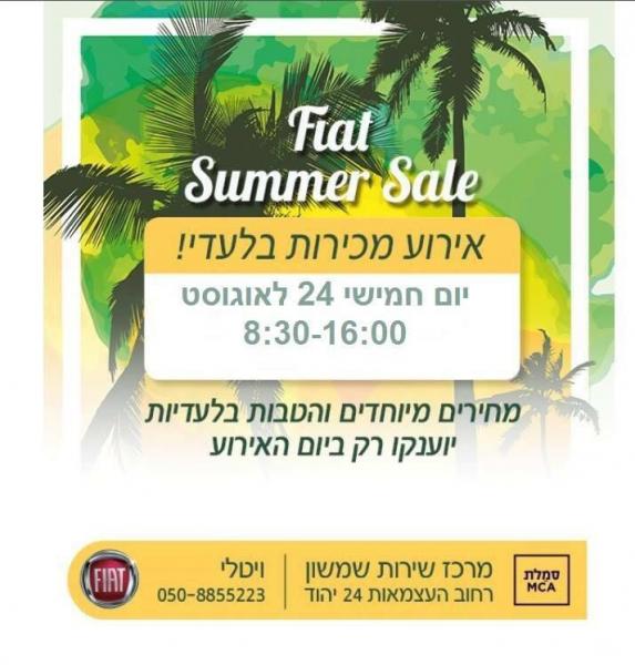 יום מכירות פיאט במרכז ביום חמישי 24.8.17