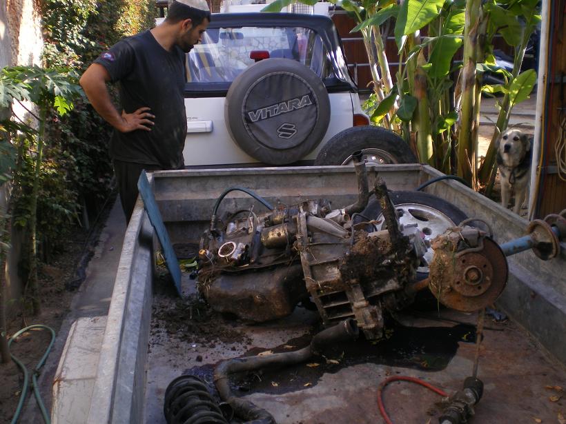 נמשך "מחול השדים" מסביבי. נסעו והביאו מנוע וגיר קומפלט של אונו טורבו 1.4, למרות אי שביעות רצוני. הם מפרקים ואני שר להם את השיר, "שני קבצנים וחמורון אחד". ![]() דוד.