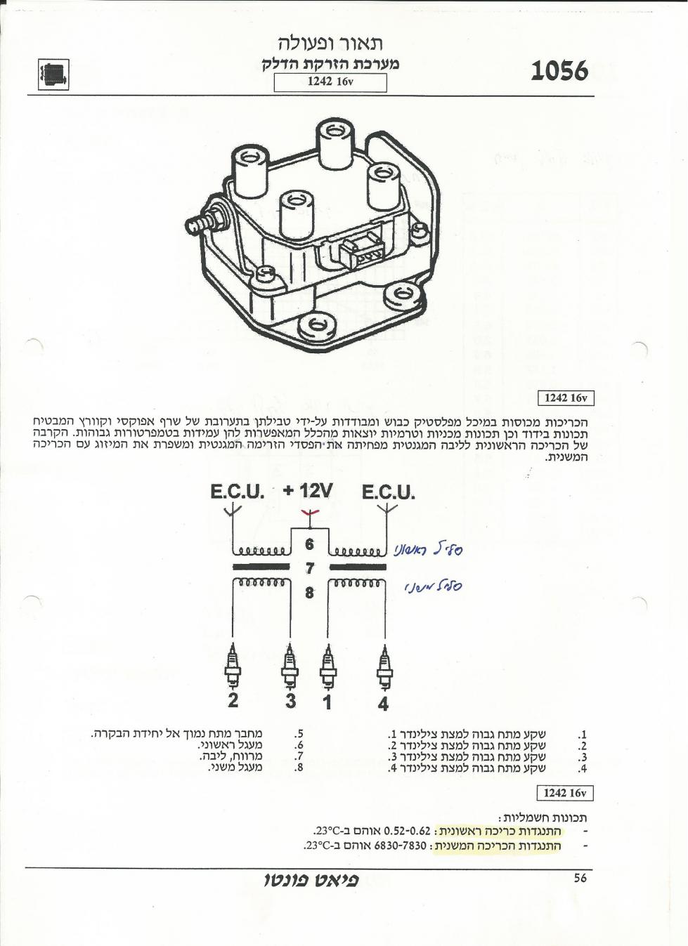 בפיאט פונטו ספייס עם מנוע 1242 סמ"ק ו 16 שסתומים, מע' ההצתה ווהזרקה הנה של "בוש":