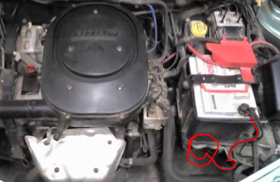 2 דברים נוספים בעניין המנורות השרופות (או לא) אם לאחר החלפת\התאמת כל המנורות הרלוונטיות עדיין הנורית דולקת יש עו 2 דברים שכדאי לנסות: הראשון זה לנקות את המגעים של חיבור בין הפנס לכבל (בד"כ השחור- המינוס מפוייח) ולרסס מעט ספריי מגעים. השני הוא לנקות את חיבור המינוס לשלדה. (בורג 13 שיושב באיזור שמתחת למצבר ומתחבר אליו בכבל.) לפרק, לשפר מגע (נייר שיוף עדין יספיק) ולהחזיר. ניסיתי לתת מושג על המיקום של הבורג המדובר והכבל המוליך אליו (באדום). מקווה שעזרתי למישהו.