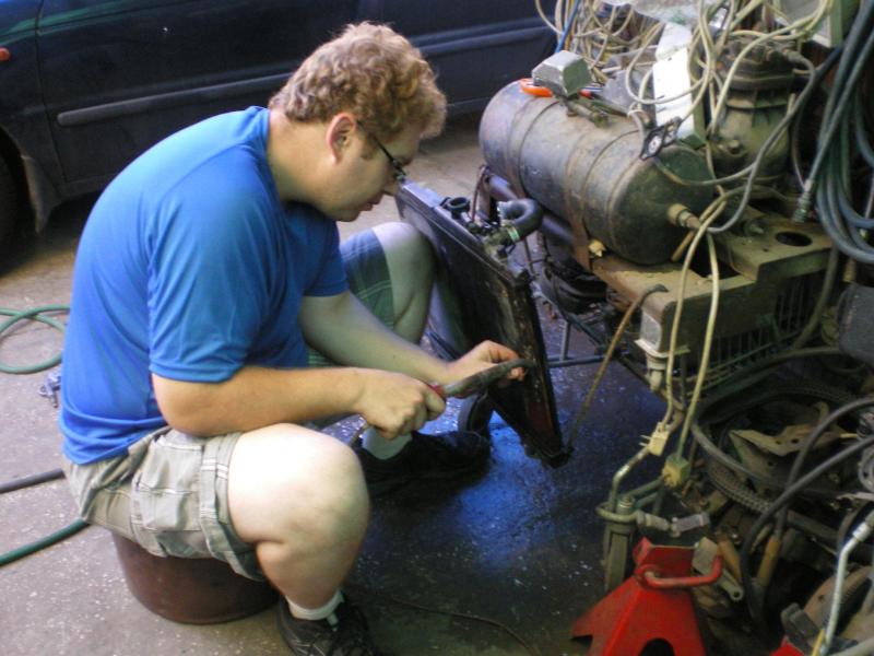 היום ניסיתי לתקן את הרדיאטור עם הלחמת כסף. מס' פעמים הלחמתי ובדקתי עם המכשיר לבדיקת לחץ במערכת. כל פעם נפתח חור חדש.