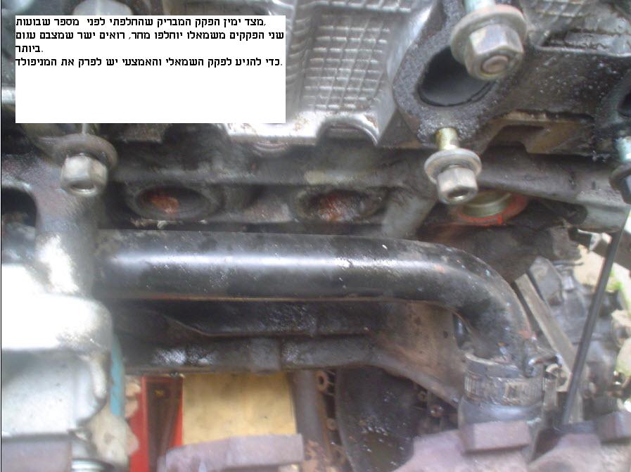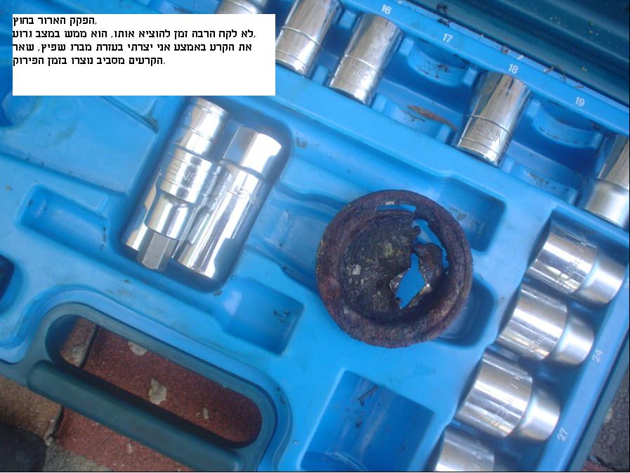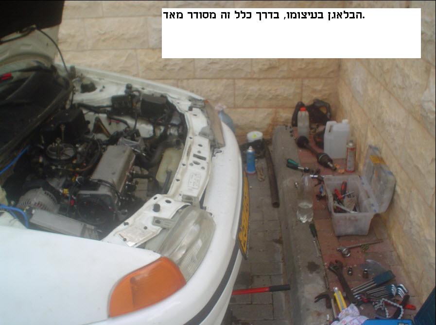 אבל גם אני לא ממש בטוח בזה, גם אני אשמח אם מישהו ישפוך אור על הנושא. היום התחלתי די מאוחר ומאד התעקבתי אבל הספקתי את מה שחשוב, קניתי שני פקקים, מחזיר שמן לפולי של גלגל התנופה, וסוף סוף קניתי את היוניט חום למאורר רדיאטור. התחלתי לעבוד על הפקקים, אחד התקנתי מעל גלגל התנופה ואחד ממש בצד השני, מתחת למותחן של הטיימינג, שנייהם בדיוק באותו גודל, ניקיתי את האיזור עם ספריי ממיס (ספריי קרבורטורים) יבשתי, גרדתי מעט עם סכין יפנית, לאחר מכן מרחתי סיליקון אדום מסביב להיקף הפקק, בעזרת בוקסה מידה 32 מ"מ הכנסתי את הפקק למקום ובעזרת פטיש הכתי בדפיקות קלות על הבוקסה. לאחר מכן מרחתי סיליקון אדום על היקפו החיצוני של מחזיר השמן, לאחר שניקיתי היטב שוב בעזרת ספריי ממיס הכנסתי אותו למקומו, ובעזרת הידיים ומעט עם פטיש בשכיבה (החלק הזה עדין). הלבשתי את גלגל התנופה, חיזקתי ברגים "ברגש" ללא מד מומנט, לאחר מכן הלבשתי את המצמד עם הבית שלו "שמש" סגרתי את כל ששת הברגים שלו ידנית, מרכזתי את המצמד בעזרת מפתח הלן בקוטר מתאים, בדקתי עם העין בעזרת פנס, והדקתי את ששת הברגים. בשלב הזה הסתבכתי ולא הצלחתי להרים את הגיר לבד, חבר שבא לעזרה עזר לי לסיים את הלבשת הגיר בחמש דקות ואני לא מגזים (זה מה שנקרא טוב שיש איש תמיכה בסביבה), את הציר של הגיר גירזתי בעדינות עם גריז אדום איכותי וגם את המנוף של הקלאץ (נראה אם יהיה שינוי לטובה, אם בכלל). מחר נשאר להרכיב את כל הכבלים והאביזרים שמתחברים לגיר כולל את התושבת גיר התחתונה, לאחר מכן אתפנה להחליף עוד שני פקקים שיושבים מתחת לסעפת הפליטה (כבר מפורקת), החלפת היוניט מאורר וטיפול בגרמושקות של הציריה הימנית. לגבי פקקי הנחושת, בחנות שקניתי אין לו במלאי והוא גם לא מחזיק את זה בסדיר, ויתרתי על החיפושים בשביל הפקקים מנחושת אבל אני עוד יחקור על זה. ונקווה שנגיע מוכן לליל הסדר. בתמונות: היוניט מאורר שתי מהירויות, שלוש יציאות בדיוק כמו שרפי לין הסביר לי (80 ש"ח) מחזיר שמן משומש מהפולי של גלגל התנופה (החדש עלה 55 ש"ח) פקק המים שיושב מעל גלגל התנופה ומתחת למותחן הטיימינג (15 ש"ח ליח')