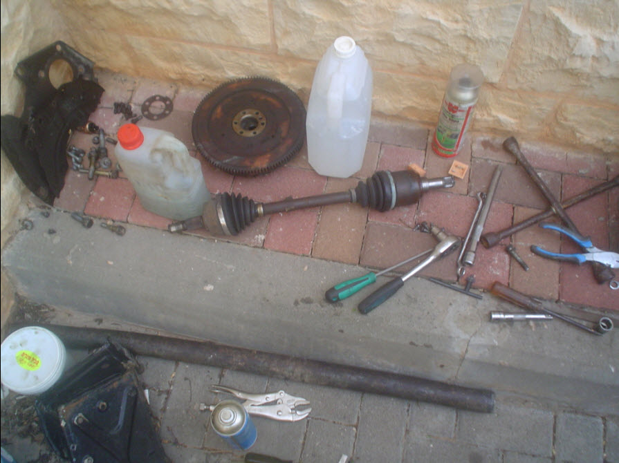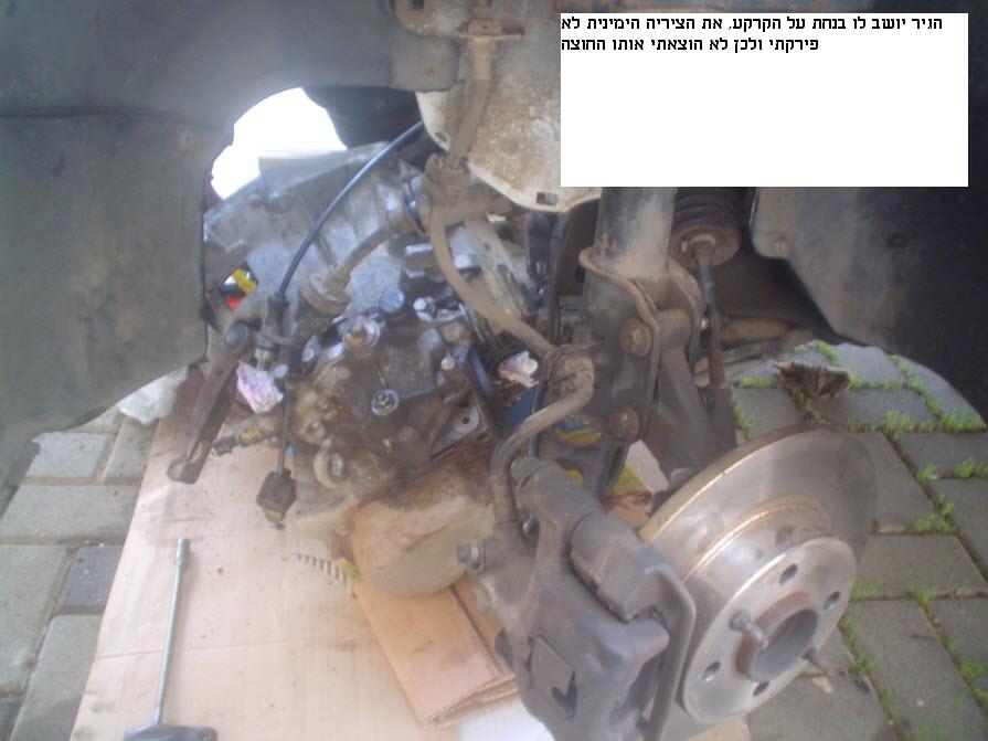 אין לי בעל בית אז אני עובד לאט ולבד ועושה הפסקות כשבא לי. מחר אני יגיע לחנות החלפים ויבדוק את פקקי הנחושת ואעדכן, אחרי שפירקתי את הפקק לא היה לי איך להגיע לחנות (הרכב מושבת). מחר בבוקר אני אסע עם חבר לקנות את הפקק. לא הגבהתי את הרכב יותר מידי (אין לי בוקים תקניים), הז'ק ההידראולי שלי יושב מתחת לקרטר שמן מנוע, אין בעיה לשלוף החוצה את הגיר, הוא גם לא ממש כבד, צריך להגביה יותר את הרכב ולא לשכוח להגיב גם עם הז'ק שיושב מתחת למנוע בהתאם. אני לא שלפתי את הגיר החוצה מפני שלא פירקתי את הציריה הימנית( ושוב בגלל שאין לי בוקים), אחרי שאסיים להרכיב את הכל אני אצטרך לפרק את הציריה הימנית ולהחליף את שתי הגרמושקות, אם היו לי בוקים הייתי חוסך הרבה זמן ועובד במקביל.