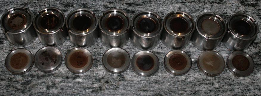 על הכוסות יש דיסקיות (Shims) בעובי מדוייק ביותר (לא זכור לי כרגע באיזה יחידות זה נמדד) וזה בשביל ליצור מרחק אחיד של כל אונה מהקאמשפט לשסתום. אם יש מרווח גבוהה בין הכוס לאונת הקאמשאפט - אז שמים דיסקית עבה יותר, אם יש מרווח נמוך - אז שמים דיסקית דקה יותר. ביצירת משטח אחיד השסתומים ייסגרו בדיוק בזמן שהם אמורים להיסגר וייפתחו בדיוק בזמן שהם אמורים להפתח וכל לא נאבד אנרגיה. אגב, זהו בדיוק כיוון תזמון שסתומים!!. את זה מאוד רציתי לעשות לבד - אבל צריך כלים שאין לי, וגם בגלל שהיה צריך לעשות מילוי לראש - אז כבר השארתי את כל השיפוץ לבעל מקצוע. בכל מקרה קצת תמונות של הכוסות ועליהם הדיסקיות - שימו לב למספרים שיש על הדיסקיות.
