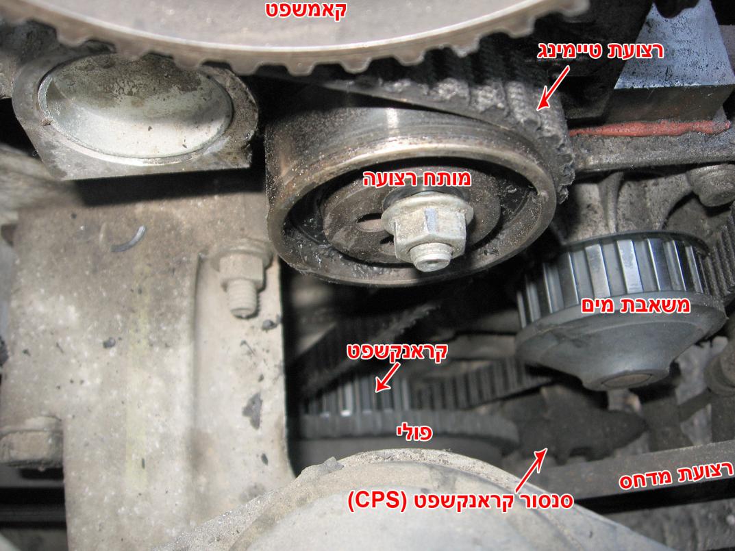 חיישן הקראנק (CPS (Crankshaft Position Sensor שנקרא גם Top Dead Center) TDC סנסור), "אומר" ליחידת הבקרה (ECU) מתי הבוכנה בצילינדר מס' 1 נמצאת בנקודה מתה עליונה (נמ"ע) וה-ECU מתזמן/ת את מער' ההצתה וההזרקה בהתאם. החיישן נמצא בחזית הפולי של הקראנקשפט (הפולי נקרא גם בשם phonic wheel), את חציו הפנימי של הפולי מקיפות שיניים כשמתוכן "חסרות" שתי שיניים. החיישן יודע למדוד שדות אלקטרומגנטיים, והערך החשמלי הנמדד ע"י החיישן משתנה בכל פעם ששן עוברת בסמוך אליו והמקום מחוסר השיניים נותן ערך יחודי המצביע על נמ"ע. ישנם מנועים שבפולי יש מגנט בעל ערך מיוחד שנותן פולס יחודי המצביע על נמ"ע. חיישן קראנק תקול יכול לגרום לכך שהמנוע יקרטע או לא יתניע כלל. אפשר למדוד את התנגדות החיישן בעזרת רב מודד (מולטימטר) כאשר הוא מפורק: התנגדות חיישן קראנק דגמי MK1 ב-20 מעלות: 650-720 ohms התנגדות חיישן קראנק דגמי MK2 ב-20 מעלות: 1134-1386 ohms בדיקה נוספת- לנתק את קונקטור החיישן (כשהוא מורכב), לחבר אל החיישן רב מודד ולכוון אותו לזרם ישר DC בתחום מתח הכולל מיליוולט. לתת סטרטר ולראות אם המתח משתנה (בסיבוב הקראנק עם ראצ'ט אפשר לראות שינוי במתח המופיע בצג בכל פעם שאחת השיניים חולפות על פני החיישן). בדיקה מדוייקת במוסך כמובן נעשית ע"י סורק או אוסילוסקופ הבודק את תדירות הפולס החשמלי והפיק של מתח החיישן. אמור לתת קריאה עם תדירות בצורת גל מרובע נקי עם פיק מתח קבוע. (אם יש חיישן רזרבי להצלבה, כמובן הפתרון האידיאלי). חשוב שהמרווח בין החיישן לשיניים יהיה מדוייק: מדידה בעזרת מד עלים מרחק שבין 0.5-1.5 מ"מ. בכל מקרה לא יזיק לנקות, אם מצטבר לכלוך על החיישן הוא עלול לזייף, אפשר לנקות את החיישן עם מברשת וספריי ניקוי (אפשר להיעזר גם ב-DW-40), להימנע מהתזה על חלקי פלסטיק וגומי או לנקות אח"כ את החומר עם סמרטוט לח. רצוי לבדוק את החוטים, הקונקטור ואת המגעים ולנקות עם ספריי ניקוי מגעים. כמו כן לבדוק שהחיישן או התושבת לא נשברו או שהבורג משוחרר. מיקום חיישן הקראנק תמונת תקריב