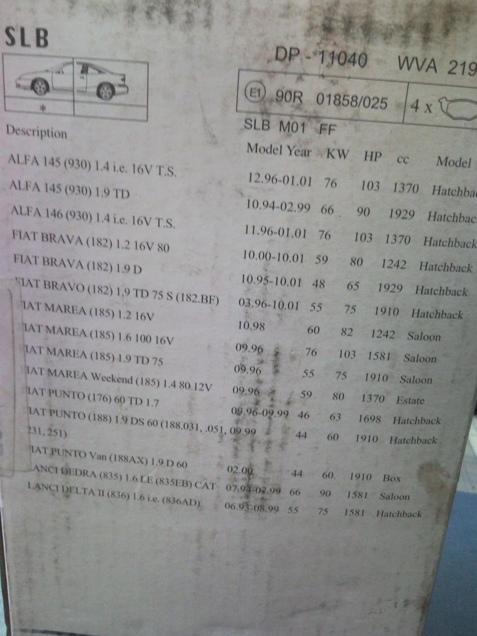 מצ"ב צילום רשימת המכוניות אליהם מתאים הרפידות