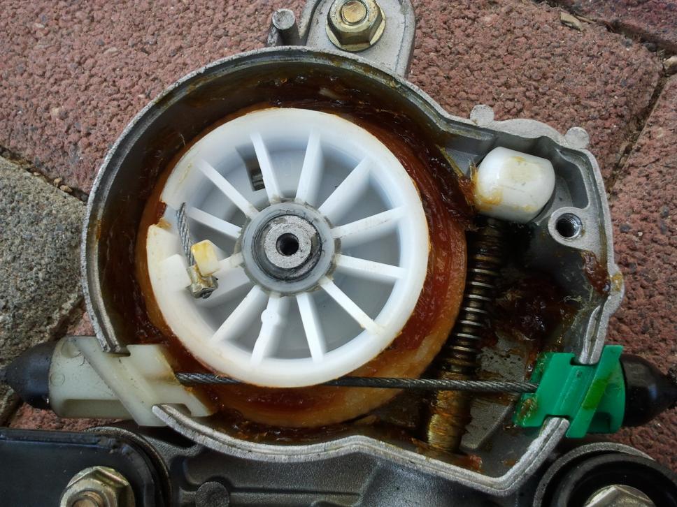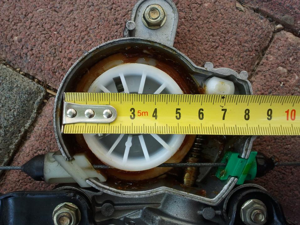 אוקיי, פירקתי את המנוע של החלון ופתחתי אותו. מהמדידות שלי עושה רושם שקופסת המתכת של החילזון היא בקוטר 7 ס"מ וגלגל השיניים הלבן הוא בקוטר 6.5 ס"מ. החילוזון, עליו בעצם מלופף חוט הברזל הוא בקוטר 4.5 ס"מ.