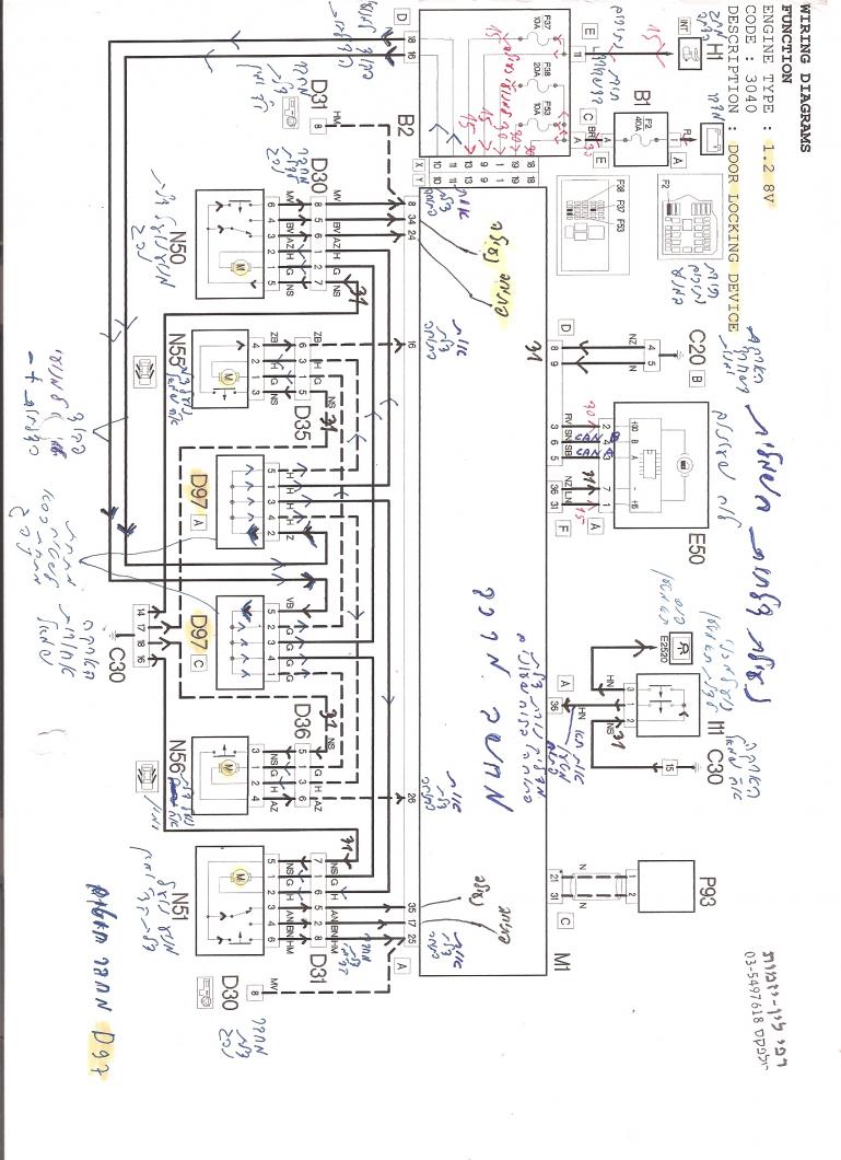 מצ"ב שרטוט חשמלי של מע' נעילת הדלתות החשמלית ואני רק מקווה שבהלך השנים לא שונו בפיאט צבעי החוטים (זה שרטוט משנת 2001)