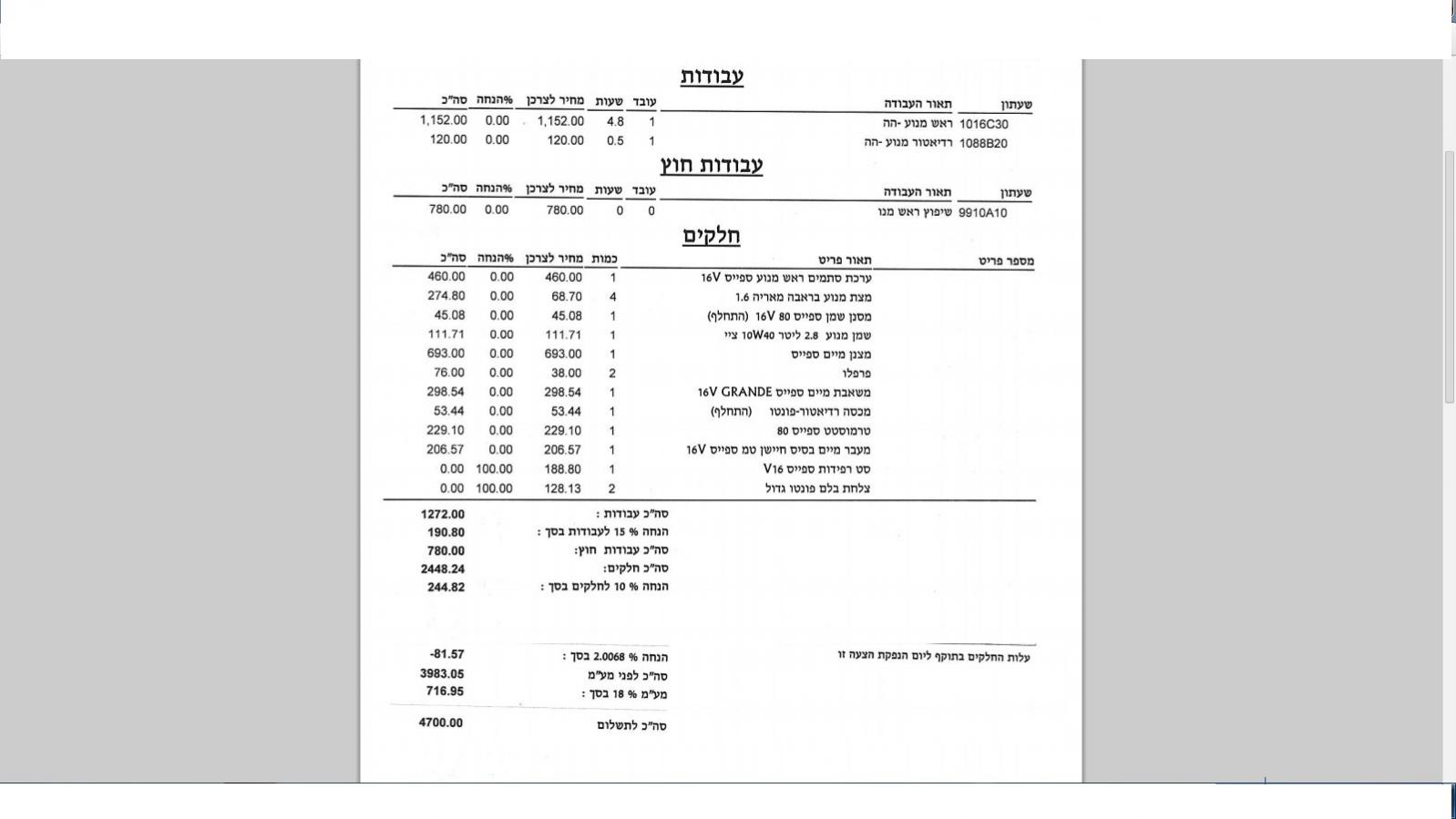 ערב טוב , קיבלתי את הצעת המחיר המפורטת עם כל החלפים והמחירים וצירפתי אותה כתמונה.