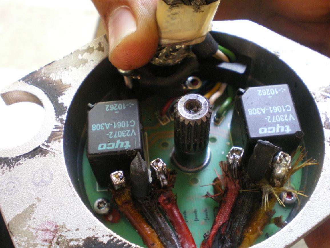 לגבי העבודה עצמה, ששת החוטים הראשיים מולחמים בתוך סופיות לחוצות וצריך מלחם חזק לפתוח אותם. בנוסף, בלוח מאחורה יש מספר נקודות זעירות שצריך להלחים מחדש עם מלחם עדין, ובלי זכוכית מגדלת ותאורה טובים זה כמעט בלתי אפשרי למי שאינו מומחה. העדפנו לא להתעסק עם זה ולתת את זה לאלקטרונאי. לפעמים עדיף. ולגבי איכות החומר, טבעי שמנוע בן 12 שנה ייראה ככה לא??