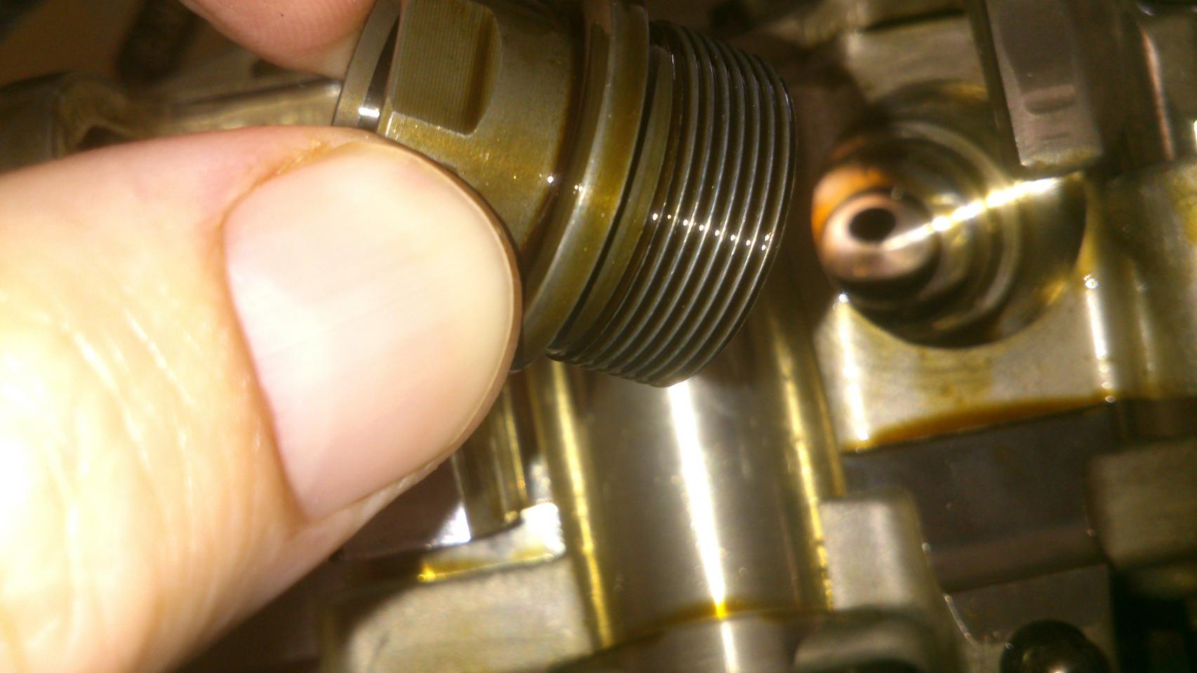 ככה זה נראה .החצים מסמנים את מיקום ההברגה התקולה של צילינדר 3 ואת הכוסית נקרא לזה שאמורה להיות מוברגת בפנים :