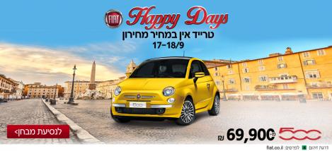 מבצע מכירות לדגמי פיאט 500 יערך יומיים בימים 17.9.15 ועד 18.9.15: