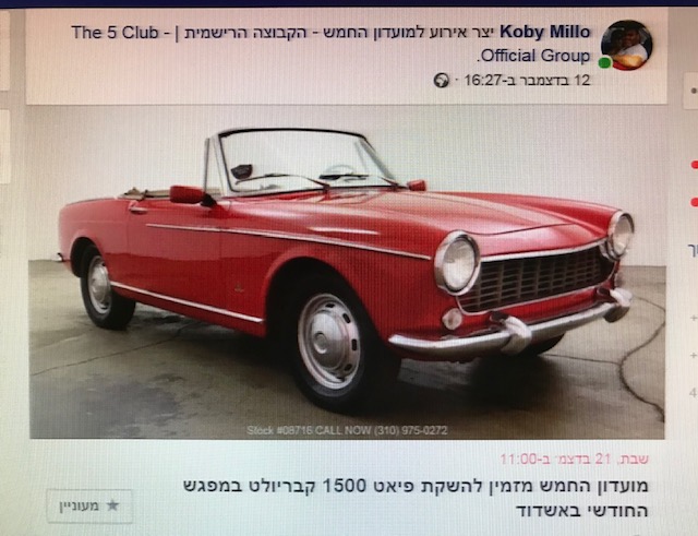 פיאט 1500 קבריולט רפי לין פיאט אספנות 0 22-07-15 10:00