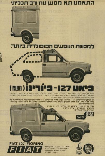 הפרסומת הנה משנת 1979 לפיאט פיורינו דור 1 שהיה עם מנוע 903 סמ"ק