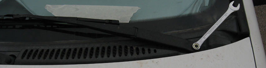 9. ההרכבה היא היפוך מוחלט של תהליך הפירוק. זרוע המגב הארוכה יותר היא מול הנהג. סימון המסקינג-טייפ מאפשר החזרה נכונה למקום.
