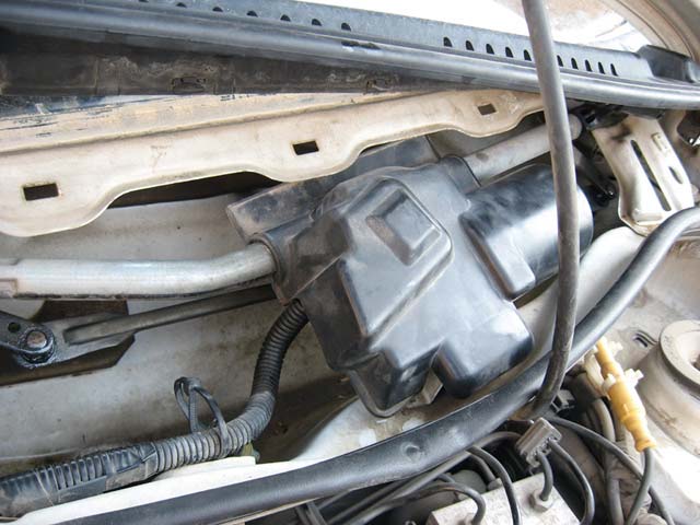 4. מעל מנוע המגבים יש מגן נגד מים שיוצא בקלות החוצה. חלק ממנו נכנס מתחת לגוף הרכב.